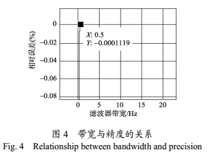由圖4可知,當濾波器的通帶帶寬大于0.5Hz左右時,處理結果的相對誤差非常接近于零,而當帶寬小于0.5Hz時,濾波器的特性變壞,削弱了有用分量,使得相對誤差發(fā)生顯著變化。為了避免這個影響,選取濾波器的通帶帶寬應大于0.5Hz。