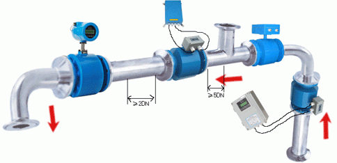 6.測(cè)量不同液體的混合介質(zhì)時(shí),傳感器應(yīng)安裝在混合點(diǎn)的上游,如安裝在下游,必須裝在混合已經(jīng)均勻或化學(xué)反應(yīng)充分完成段;