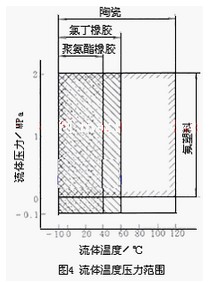 常用襯里材料有氟塑料、聚氨酯橡膠、氯丁橡膠和陶瓷等。近年有采用高純氧化鋁99.99%AI2O3)陶瓷制成襯里的,但只限中小口徑傳感器。氯丁橡膠和玻璃鋼用于非腐蝕性或弱腐蝕性液體,如工業(yè)用水、廢污水及弱酸堿,價(jià)格*為低廉。氟塑料具有優(yōu)良的耐化學(xué)腐蝕性,但耐磨性差,不能用于測(cè)量礦漿液。氟塑料中*早應(yīng)用的是聚四氟乙烯,因與測(cè)量管間僅靠壓貼,無(wú)粘結(jié)力,不能用于負(fù)壓管道,后開發(fā)各種改性品種,實(shí)現(xiàn)注塑成形,與測(cè)量管有較強(qiáng)結(jié)合力,可用于負(fù)壓。聚氨酯橡膠有*好的耐磨耗性,但耐酸堿的腐蝕性較差,它的耐磨性相當(dāng)于天然橡膠的10倍,適用于煤漿、礦漿、介質(zhì)溫度低于40~60/70℃的場(chǎng)合。氧化鋁陶瓷有*好的耐磨耗性和對(duì)強(qiáng)酸堿的耐磨腐蝕性,耐磨性約為聚氨酯橡膠的10倍,適用于具有腐蝕性的礦漿,但性脆,安裝夾緊時(shí)易碎,可用于較高溫度(120~140/180℃)但要防止溫度劇變,如通蒸汽滅菌,一般溫度突變不能大于100℃,升溫150℃ 要有10min時(shí)間。 通用型EMF幾種材料的壓力、溫度大體適用范圍可參閱下圖。