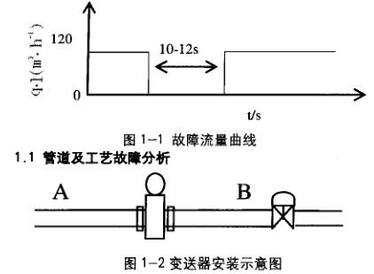 被測液從A流向B(如圖1-2),傳感器水平安裝,電*水平,傳感器下游2m處裝有調(diào)節(jié)閥,從圖中可以排除由于傳感器中急劇潴留氣和傳感器后無背壓等情況導(dǎo)致的測量脈動情況產(chǎn)生。