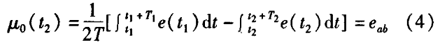 分體型電磁流量計(jì)一般都采用工頻交流電源供電,其電源電壓的幅值和頻率的變化都會(huì)給分體型電磁流量計(jì)帶來(lái)電源性干擾噪聲。對(duì)電源電壓的幅值變化,因采用多級(jí)集成穩(wěn)壓,一般而言電源電壓的幅值變化對(duì)電磁流量的測(cè)量精度影響不大。當(dāng)電源電壓的頻率波動(dòng)時(shí),雖然其波動(dòng)范圍有限,但對(duì)分體型電磁流量計(jì)測(cè)量精度影響較大。為了解決工頻干擾問(wèn)題,實(shí)現(xiàn)對(duì)流體流速感應(yīng)電勢(shì)e柚信號(hào)的準(zhǔn)確測(cè)量,需利用以下基本關(guān)系:①勵(lì)磁周期為工頻周期的整數(shù)倍,即勵(lì)磁頻率為50/nHz(n為偶數(shù));②正負(fù)勵(lì)磁下的同相位采樣。圖2是對(duì)應(yīng)低頻矩形波勵(lì)磁形式下的典型電勢(shì)信號(hào)形式,按上述關(guān)系在一個(gè)勵(lì)磁周期下,若假設(shè)t。和t:點(diǎn)為工頻干擾的等效干擾點(diǎn),且采樣寬度T=T1=T2,則e –ab的基本算式為:,