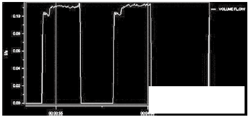 灌裝頭的*終出口部分為10~14mm的可更換縮口。通過縮口,可以產(chǎn)生背壓,一般縮口內(nèi)置蜂窩狀虹吸管,保證灌裝前后的管道滿管。從測(cè)試的流量波形上看,10mm的灌裝頭產(chǎn)生適當(dāng)?shù)淖枘嵝Ч?,流量曲線較穩(wěn)定。