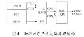 勵(lì)磁時(shí)序產(chǎn)生電路用于產(chǎn)生勵(lì)磁控制信號CON1和CON2以控制方波勵(lì)磁時(shí)序,其電路原理結(jié)構(gòu)圖如圖4所示。