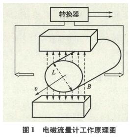 煤漿水流量計是利用法拉*電磁感應定律測量,如圖1所示,用于測量電*與運動的流體構(gòu)成的回路中產(chǎn)生的電參數(shù),并根據(jù)公式換算成流體速度,再測量流通截面液位高度得到流通面積,兩者相乘得到所測流量。