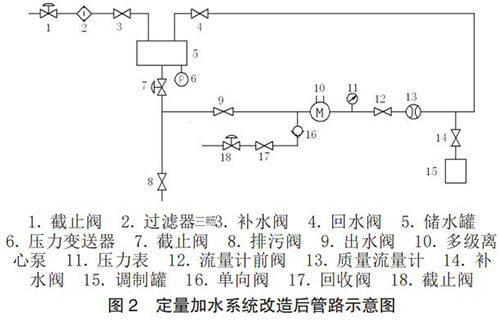根據設計思路,對定量加水系統(tǒng)的管路進行了改造設計,改造后管路示意圖如圖 2 所示。