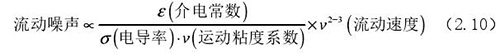 流動噪聲主要出現(xiàn)在低電導(dǎo)率流體的檢測中,由輸出端輸出的直流*化電壓時常出現(xiàn)左右擺動的現(xiàn)象,而此種擺動的電壓被稱為流動噪聲。上式(2.5)中可以觀察了解到流體電導(dǎo)率和流動噪聲呈現(xiàn)出負(fù)相關(guān)關(guān)系,由此可以了解到在進行低電導(dǎo)率的計算中需要重點考慮位移電流。
