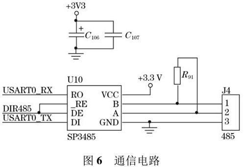 電鍍廢水流量表輸出的流量值可以通過(guò)外接的 TFTLCD 屏直接顯示,還可以通過(guò)預(yù)留的 RS485 通信接口將數(shù)據(jù)發(fā)送到上位機(jī)中。RS485 電路*大的優(yōu)點(diǎn)是 485 電平與 TTL 電平兼容,方便與 TTL 電路相連;抗共模干擾能力強(qiáng);數(shù)據(jù)傳輸速度快,高達(dá) 10 Mbps;通信距離遠(yuǎn),*大為 1.2 km。系統(tǒng)采用 SP3485 芯片進(jìn)行數(shù)據(jù)通信,SP3485 是一款低功耗芯片且符合RS485 協(xié)議的收發(fā)器,電路圖如圖 6 所示。