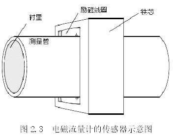 傳感器的主要作用是將通過管道的流量信號進(jìn)行轉(zhuǎn)換,將其轉(zhuǎn)為電動勢。市面上常見的傳感器主要有下圖 2.4 中如測量管、鐵芯、勵磁線圈、襯里等結(jié)構(gòu)。