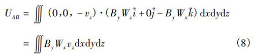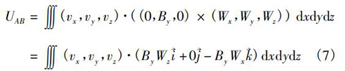 式中V為管道法蘭式電磁流量計(jì)傳感器測(cè)量空間;W→為權(quán)函數(shù)。在直角坐標(biāo)系(x,y,z)中,式(5)可以轉(zhuǎn)換為