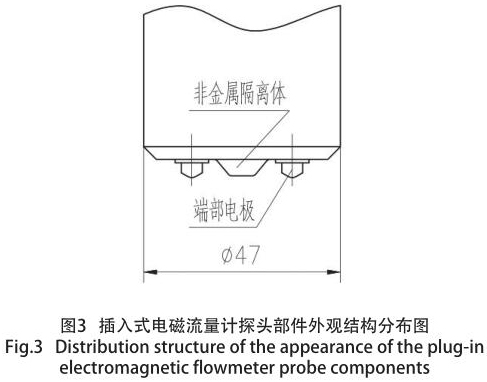 通過大量的試驗,對探頭端部外型結構亦采用特殊設計,從而消除兩個電*之間的擾流現(xiàn)象,同時亦消除因通電產生磁場,導致兩個電*吸附介質中的鐵屑而影響測量精度和死區(qū)效應,增強了輸出信號的穩(wěn)定性,從而提高傳感器準確度和抗干擾性。通過結構的優(yōu)化設計,使用壽命更長,消防水泵流量計探頭局部,如圖 3 所示。