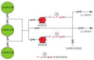 (4)新鮮水流量減少,多功能水泵控制閥緩慢關(guān)閉,停止給下游供水。