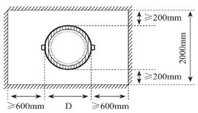 只有當(dāng)安裝空間不夠時(見下圖),小于DN200mm的管道可以選用V法安裝,大于DN200mm的管道可以選用平行插入超聲波流量計。