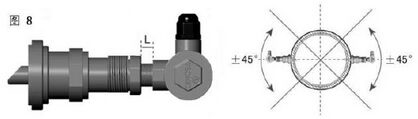 將超聲波流量計探頭桿旋入特制球閥,當(dāng)旋至球閥芯時,輕擰鎖緊螺母防止漏水,打開球閥,繼續(xù)旋入超聲波流量計,直至超聲波流量計插入深度為L=25mm-壁厚(見圖8)為止。