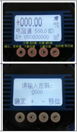 1.擰開污水流量表前蓋按鍵說明(由左至右):