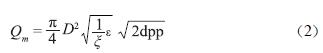 設(shè)Qm為質(zhì)量流量;Qv為體積流量;ζ為流量計(jì)探頭的阻斷系數(shù)(也可為常數(shù)K);ε為流體膨脹系數(shù);D為測量管內(nèi)徑;dp為流體差壓;ρ為工況下的流體密度,則
