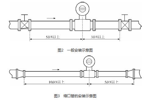 dn200污水流量計(jì)的安裝質(zhì)量對(duì)其測(cè)量結(jié)果的影響較大,因此在安裝時(shí)需要注意幾個(gè)問(wèn)題。*先,dn200污水流量計(jì)直管段的選擇在配管時(shí)一定要按照要求進(jìn)行選擇,一般選擇流量計(jì)通徑與工藝管道通徑相同,即可滿(mǎn)足工程需要,而且安裝方便、壓力損失小,流量計(jì)直管段上游側(cè)的長(zhǎng)度不少于5倍工藝管道直徑,下游側(cè)的長(zhǎng)度不少于3倍工藝管道直徑(圖2)。但在流速太慢而又要求精度較高或需要變徑的應(yīng)用場(chǎng)合,可選擇通徑小于工藝管道通徑的流量計(jì),以提高測(cè)量精度,此時(shí)流量計(jì)上、下游必須加裝異徑管,且進(jìn)口異徑管上游側(cè)應(yīng)有長(zhǎng)于10倍工藝管道直徑的直管段,下游側(cè)應(yīng)有長(zhǎng)于5倍工藝管道直徑的直管段(圖3)。